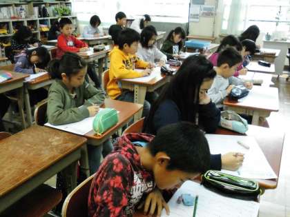 4年2組では,先日から復習している「漢字テスト」に取り組んでいました。