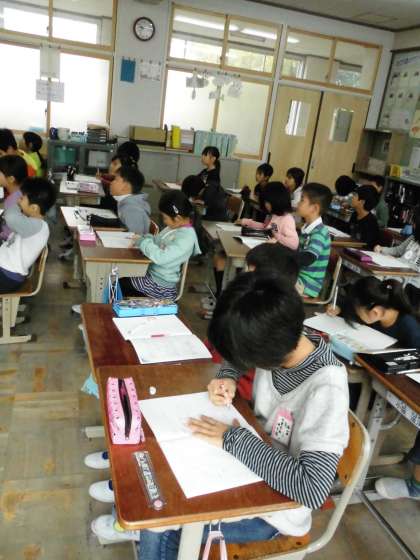 3年2組では,算数の文章問題の解き方について,みんなで確かめていました。