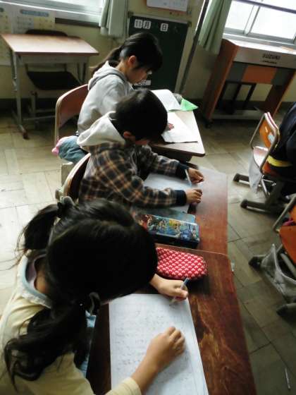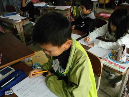 2年2組では,12月のきらめきタイムに向けて作文を書いていました。