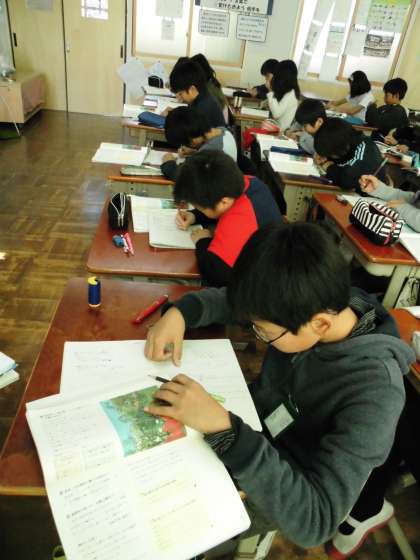 6年2組では,「自分の見方を伝える文章を書こう」という課題で文章を書いていました。書くときには,効果的な表現の工夫を使って書こうとしていました。