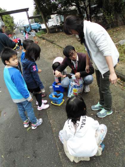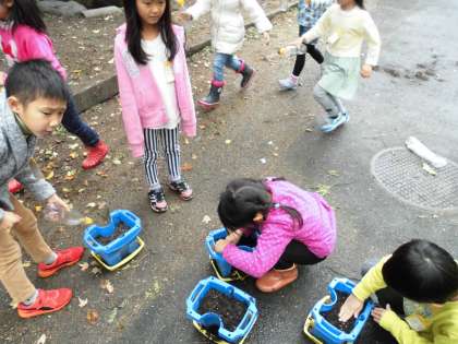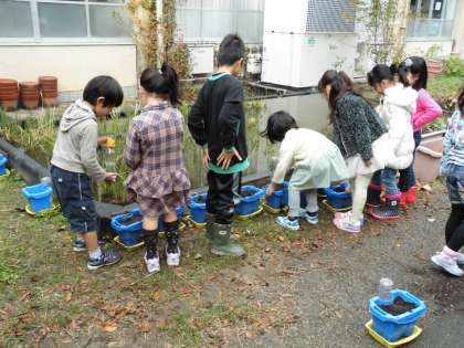 観察の後,中庭で一人一人植木鉢に球根を植えました。