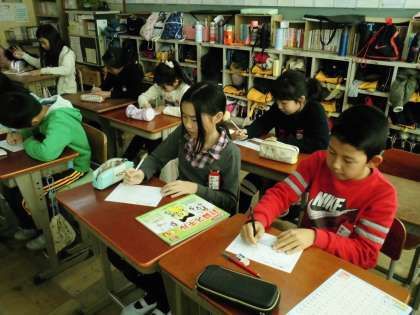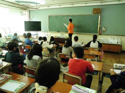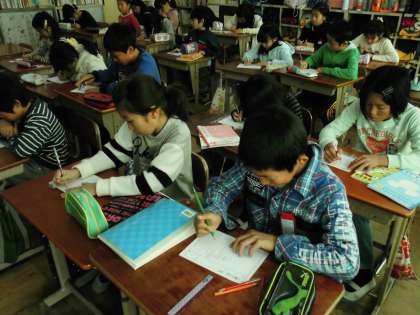 4年2組では,算数の一問テストで89.2÷19の計算問題に取り組んでいました。