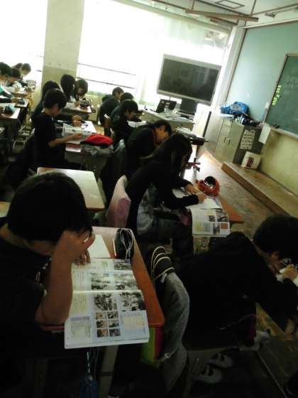 6年2組では,社会の時間に「戦中の生活」について資料から話し合っていました。
