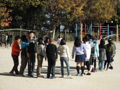 大なわ跳び大会に向けて,大なわ跳びをしてい子達がいました。
