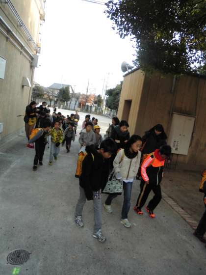 地域委員さんや教員とともに下校し,集団での歩き方を注意されたりしながらおうちへと帰りました。