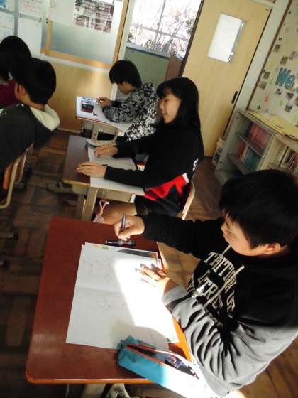 表現したい様子を写真にし,その写真をもとに下絵を作成しています。