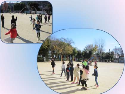 教室では,何でもバスケット・マジカルバナナ・しんけいすいじゃく(トランプ)などを行い,運動場では大なわや鬼ごっこ,ドッジボールをしていました。