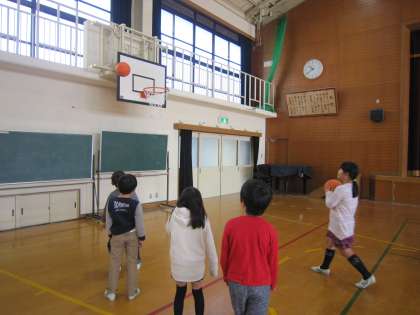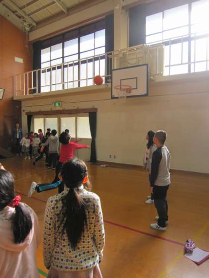 体育館の中では,リレー,バスケットボール,ドッジボールを行って楽しんでいました。どのグループも6年生がリードしながら楽しく過ごせていました。