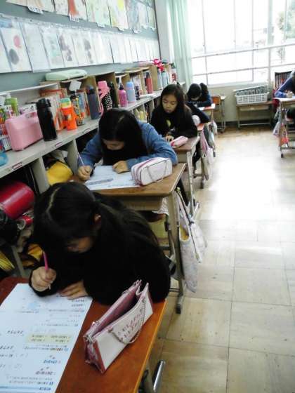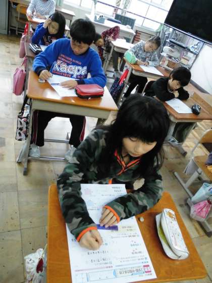 4年2組では,算数でこれまでに学習してきた内容についてのテストを行っていました。