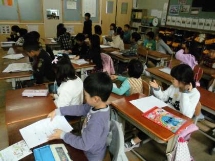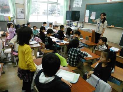 どのようなことをどのようにかくのかを説明し,子ども達からの質問を聞いていました。
