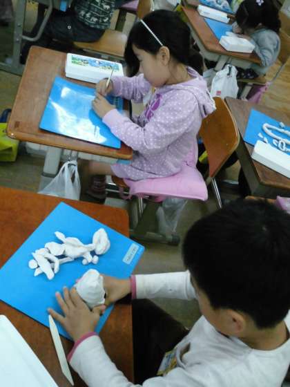 遊園地を作っている子が何人かいたので,一か所に集めてみんなで見ようとしていました。