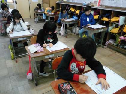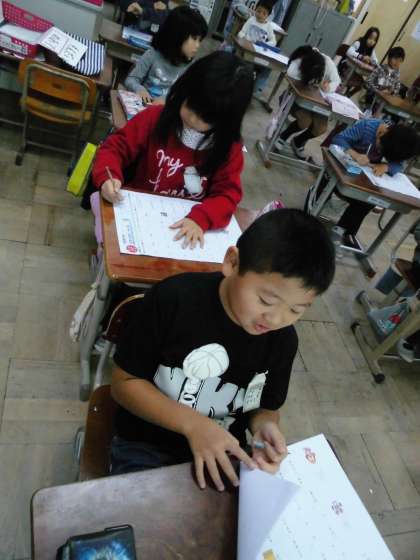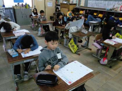 2年2組では,これまでに学習した漢字についてのテストをしていました。
