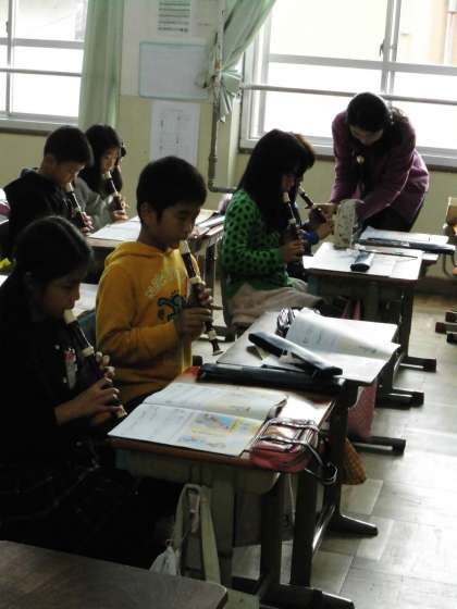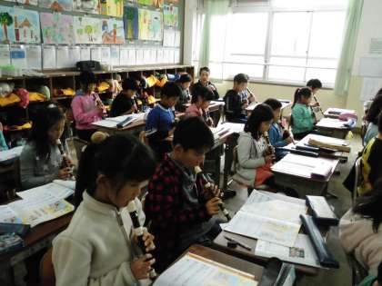 3年1組では,音楽の時間にリコーダーで「ふうせん」という曲の練習をしていました。