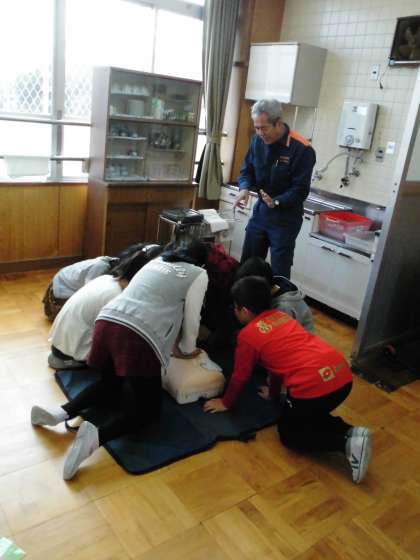 西京消防署の方のご協力を得て,6年生が救命講習を受けました。