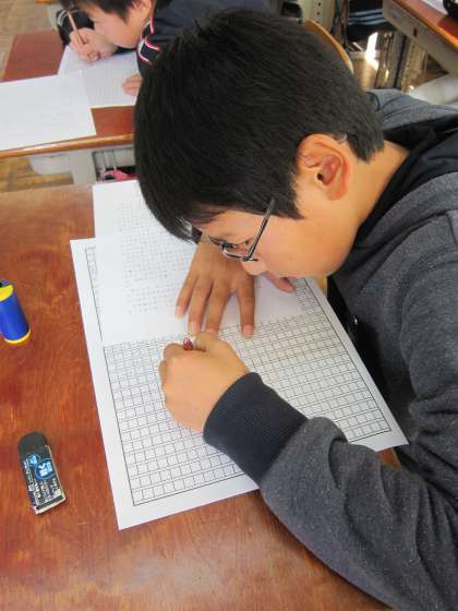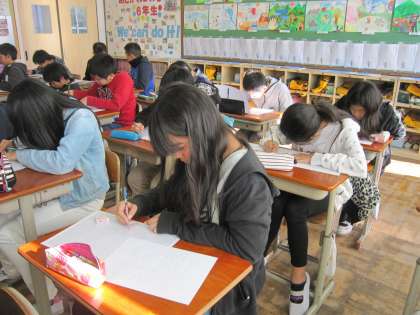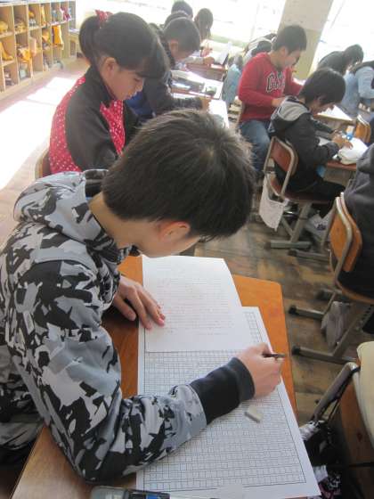 6年2組では,卒業文集の下書きをしていました。子ども達がはじめに書いた作文を担任が添削し,添削された文を見ながら下書きに再度取り組んでいました。