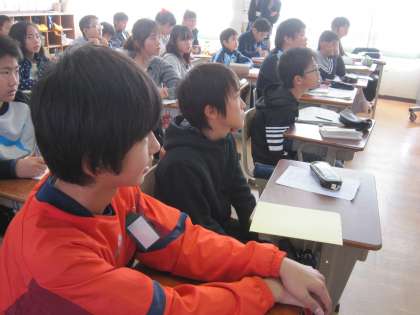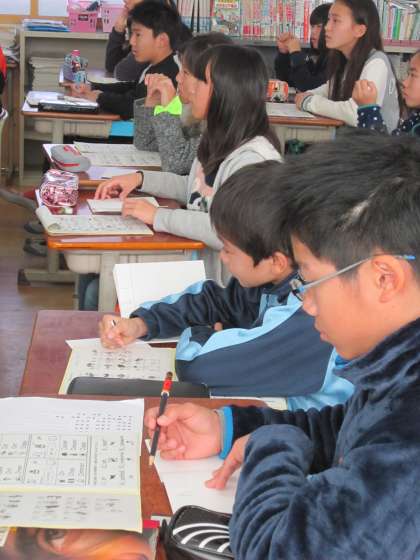 この後は,「left」や「lion」などL(l)の発音に気をつけながら先生の後に続いて発音していました。