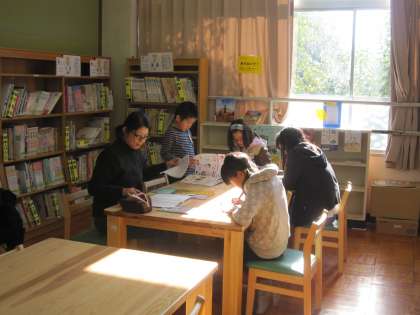 図書室では,ぱたぽんさんと一緒に図書委員も活動をしていました。
