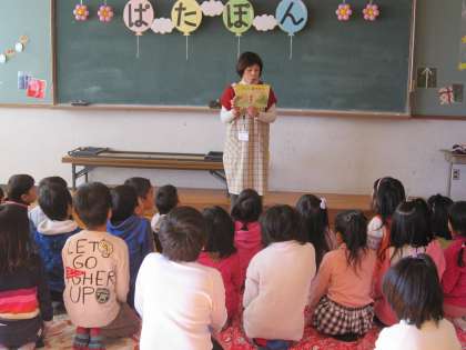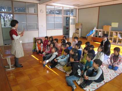 たくさんの1年生に交じって,4年生もお話に聞き入っていました。