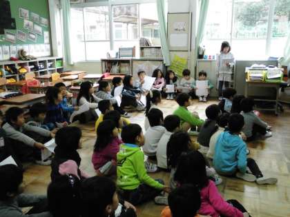 今日の読み聞かせは,「うわばきクックと手ぶくろテンテ」という絵本です。