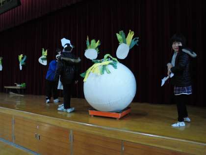 松尾中学校の出し物は,手作りの絵本の読み聞かせがあり,みんな聞き入っていました。あおぞら学級は「おおきなかぶ」をしました。