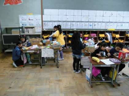 今日は,1年生を招いてお店を開くのでそれぞれお店の準備をしていました。