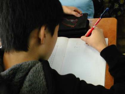 11〜12歳の子ども達についてかかれたグラフを見て,「このグラフにみんなが数えられていますか。」と子ども達に問いかけると,「入っていません。」「どうして?」「このグラフについてのデータは自分たちが生まれる前のものだからです。」というやり取りがされていました。