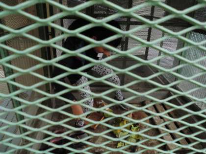 今日の当番の子たちが世話をしようと戸をあけかけると,うさぎたちが戸に近づいてきていました。