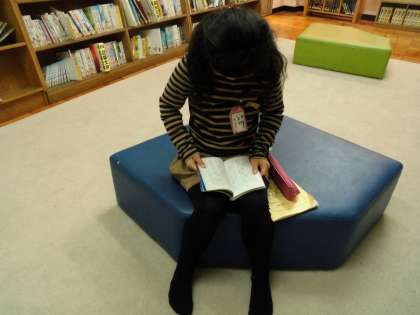 広い図書室の好きな場所で,好きな本を選んで楽しく読みました。