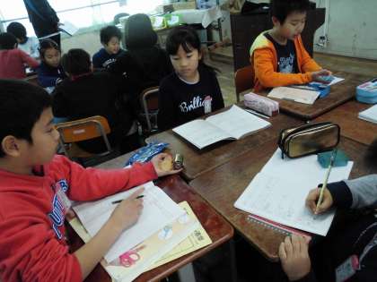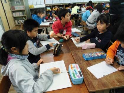 理科は「物の重さを調べよう」で,5つの物を手に取って重さの順を確かめていました。
