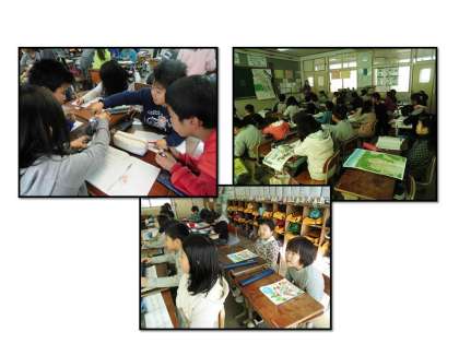 3年生との交流学習では,音楽・社会・理科などで交流をしています。音楽では「ふじ山」を歌ったり,社会では「昔をつたえるもの」で,地域の中で昔から残っているものを発表し合いました。理科では,「ものの重さを調べよう」で形が変わっても重さは変わらないという実験をしました。
