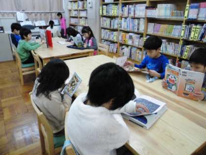 子ども達は,図書室に入ると,読みたい本を探しだし,本の世界へと入っていきました。