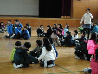 1年生は,話し合いではなく体を動かしながら「みんななかよし」を体感しようとしました。