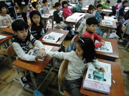 子ども達は,教材用のお金を使って計算の仕方を学習していきます。