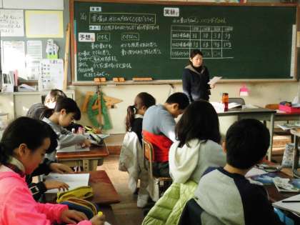 この話し合いの中で,一定量の水に食塩を溶かし続けると,限りなく溶けるという子たちと,これまでの経験から考えて溶ける量には限りがあるという子たちとに分かれました。これから,実際はどうなのかを確かめる実験を行います。
