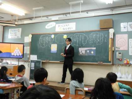 道徳の授業で,大勢の○の形をした中に一人だけ□の形をした「かっくん」が,最初は仲間外れにされていたけれど,自分の長所をみんなに認めてもらってなかよくなる資料を通して,お互いの違いを認める大切さについて学習しました。