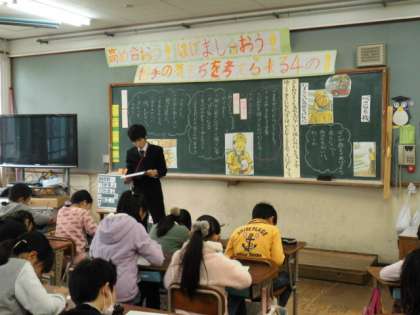 4年生は道徳で,「心の信号機」という資料を通して,目の不自由な方が,横断歩道の前に立っている姿を見た男の子の言動から,「相手を思いやり,進んで行動する」ことについて考えました。