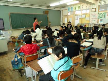 4年2組で音楽をしました。たくさんの曲を歌った後,リズム作りを楽しみました。