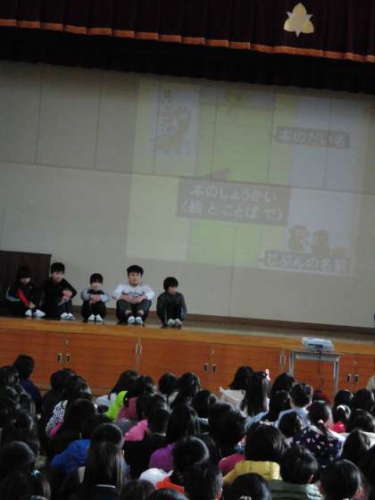 取組は,今日のおすすめの本の紹介のほかに,図書クイズや一人一人が行う「本の紹介」カードの作成,朝の読み聞かせです。