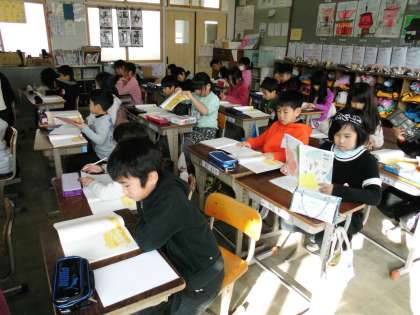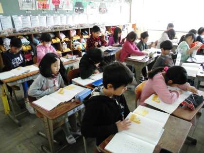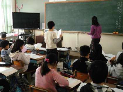 3年1組では,国語の時間に「三年とうげ」を音読していました。