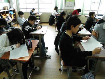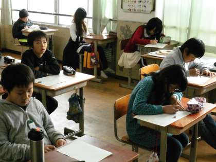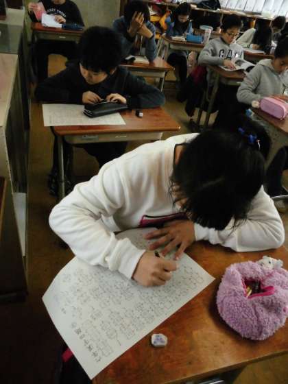 6年1組では,漢字50問のプリントに取り組んでいました。