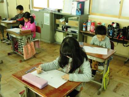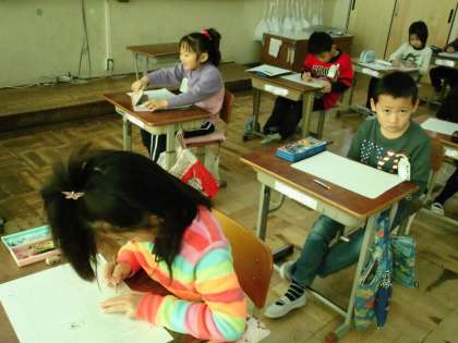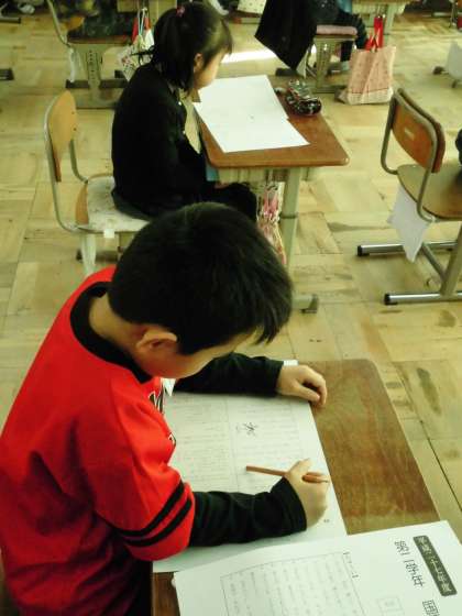 聞き取り問題に答えた子たちは,自分で書かれている文章を読み問題を解いていきます。