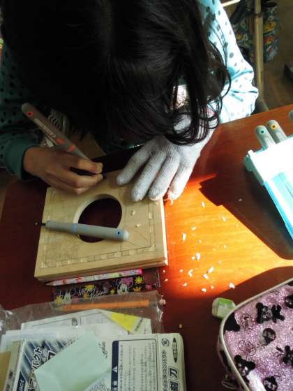 6年1組では,図工の時間に「木彫りの時計」を制作中です。