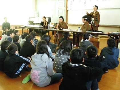 今日は,雅楽に取り組まれている方々にお越しいただき,目の前で演奏を聴かせていただきました。