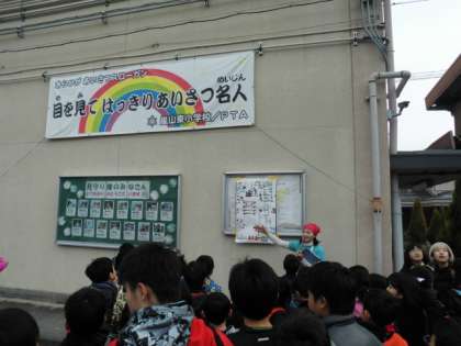 2月6日(土)少年補導,おやじの会,PTAの皆様にお世話になり,恒例のもちつき大会が行われました。開会式のお話の中で,30年近く続いている伝統行事であることを知りました。