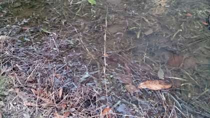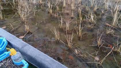 学校の中庭にある田やビオトープに氷が張っていました。