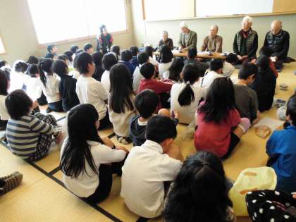 3年生は総合学習で,昔の道具を調べています。今日は,地域の老人会の方に来てもらいました。昔の暮らしを聞いてから七輪の使い方を教えてもらいました。