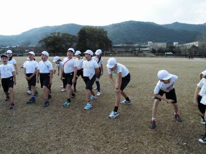 持久走大会の前に,早めにグランドに行って準備運動をしてから,スタート地点に並びました。