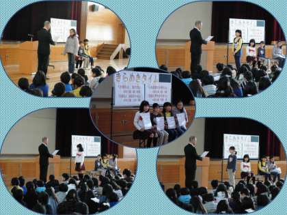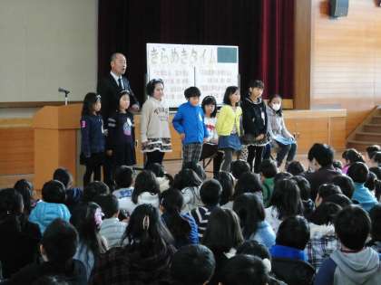 4名の発表の後,学校長より,「ていねいに伝えようとしていることが分かりました。また,発表の前後にていねいなあいさつをしていましたね。」と発表者のことをほめました。続けて「聞いていたみんなも,小さな声の質問者の声を聞きとろうとしていましたね。」聞いていた子ども達をほめていました。