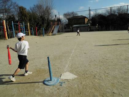 ベースボールで,ボールを打つ練習もしました。