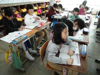 3年1組では,算数で「べつべつに いっしょに」を学習しています。今日は,「1本70円のジュース6本と1こ30円のみかん6個を合わせて買うといくらになりますか。」という問題に取り組んでいました。